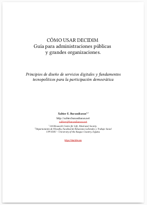 Barandiaran, X.E. (2023). Cómo usar Decidim. Guía para administraciones públicas y grandes organizaciones. https://xabier.barandiaran.net/?p=2843